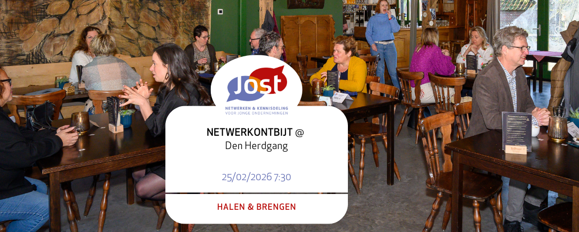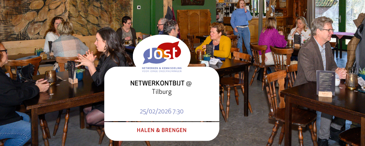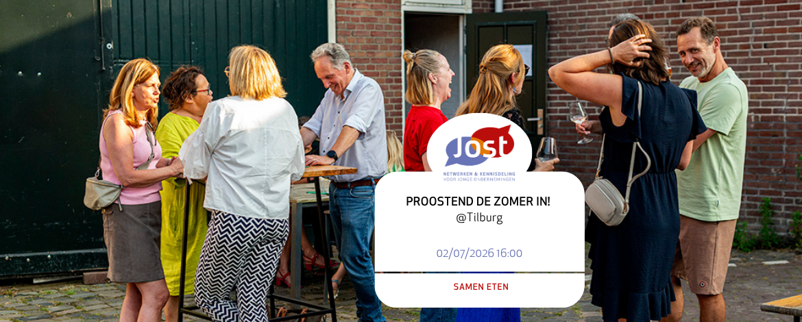JOST is dè ontmoetingsplaats van en voor ondernemingen uit Tilburg en omgeving. De vereniging organiseert regelmatig interessante bijeenkomsten over relevante thema’s die te maken hebben met ondernemen en verkopen. Denk aan marketing, acquisitie, communicatie, bedrijfsontwikkeling en financiën en administratie. JOST is dus een bron van kennis en ervaring. Benieuwd wat er de komende periode gepland staat? Bekijk de agenda.