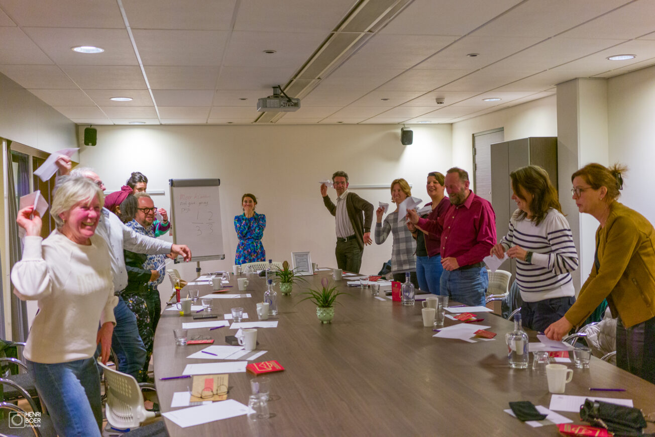 Wanneer we het over onze toekomstplannen hebben, vraagt onze spreekster op de achterkant van een blaadje te schrijven wat we over zes maanden zakelijk bereikt willen hebben. En om de wet van de aantrekkingskracht aan te spreken vraagt ze aan ons er een vliegtuig van te vouwen en deze de lucht in te sturen. Dus er waren in een keer heel wat lucht- en wensverplaatsingen in de ruimte. Bij het benoemen van onze doelstellingen stelt ze nog een aantal kritische vragen. Over wat er gebeurt wanneer het doel niet zou halen? Vanuit de gedachte dat wanneer de pijn niet groot genoeg maakt, ga je het doel ook niet bereiken.