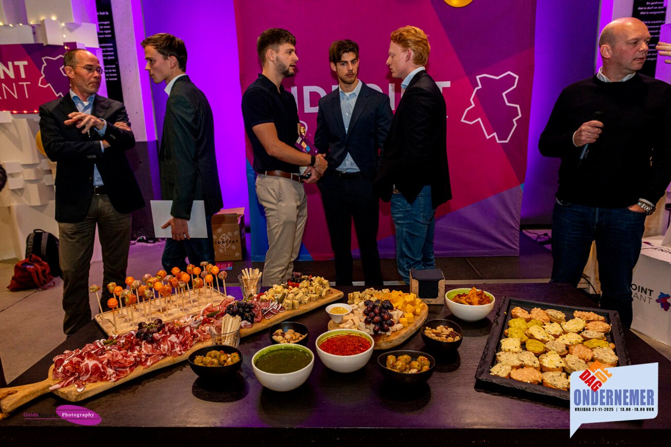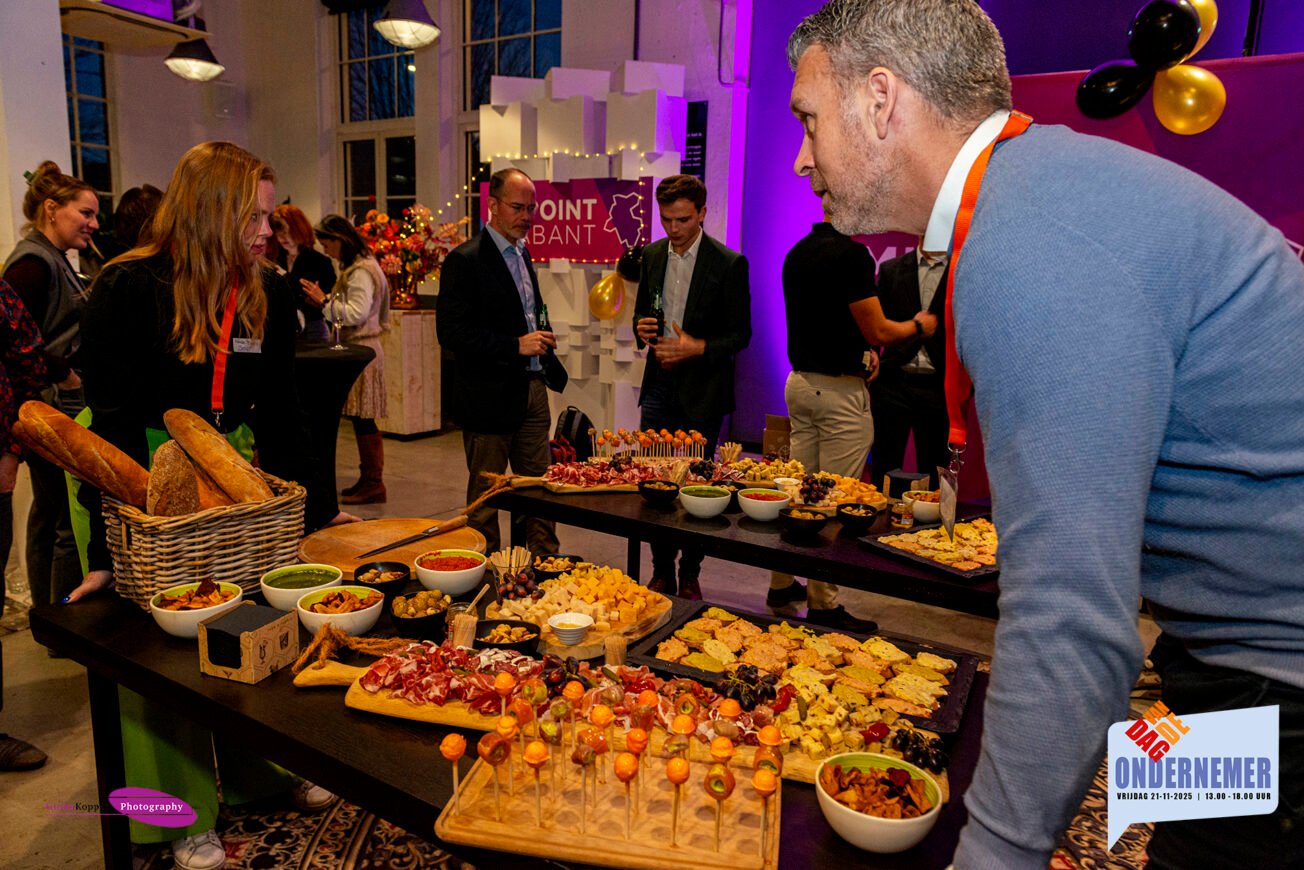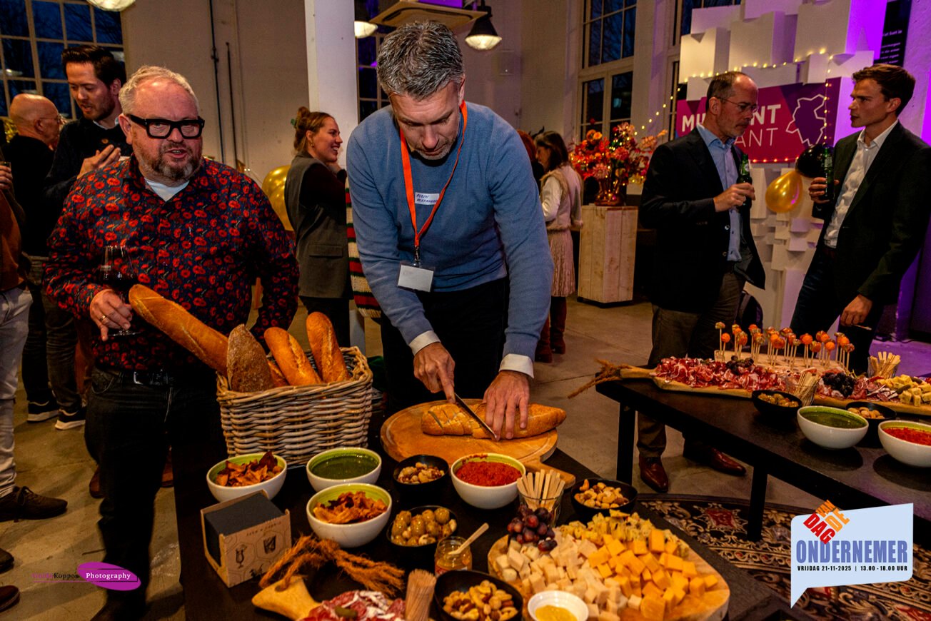 Daarna kon de borrel echt beginnen. Zeker na het binnendragen van 2 tafels boordevol heerlijke borrelhapjes van Josjes Culinair. In een zeer ontspannen sfeer wordt er volop geborreld en genetwerkt. En toch komt aan deze zeer gezellige en energieke Dag van de Ondernemer 2025 een einde.