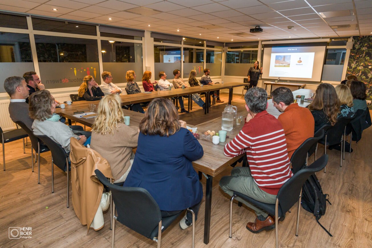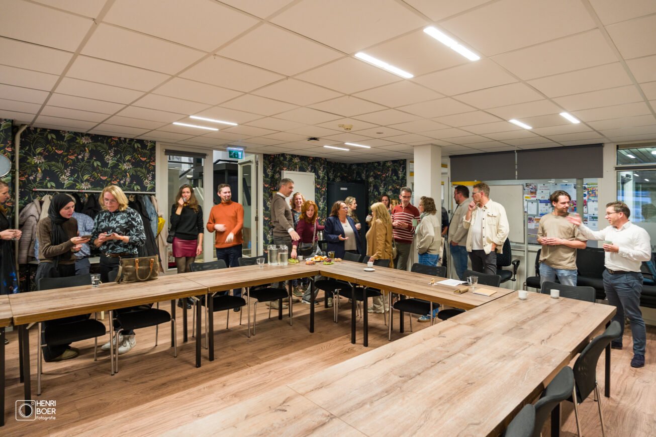 Wanneer iedereen ‘binnen’ is neemt Corine haar rol als voorzitter ter harte door ons van harte welkom te heten. Na enkele mededelingen over aankomende activiteiten geeft ze de introducés de ruimte om een korte pitch over zichzelf te geven.