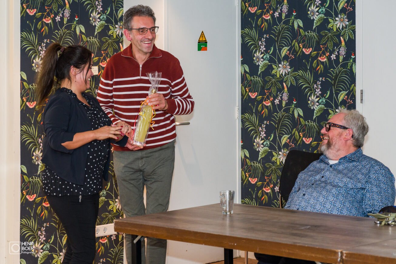 Na ruim 5 kwartier wordt ze hartelijk bedankt voor deze heldere presentatie en ontvangt ze traditioneel een fles Tilburgse limoncello. Het gezelschap verplaatst zich daarna naar het café alwaar het netwerken nog verder gaat. Onder het genot van het gebruikelijke hapje en drankje. Met volle tevredenheid kunnen we terugkijken op deze zeer interessante en geslaagde masterclass.