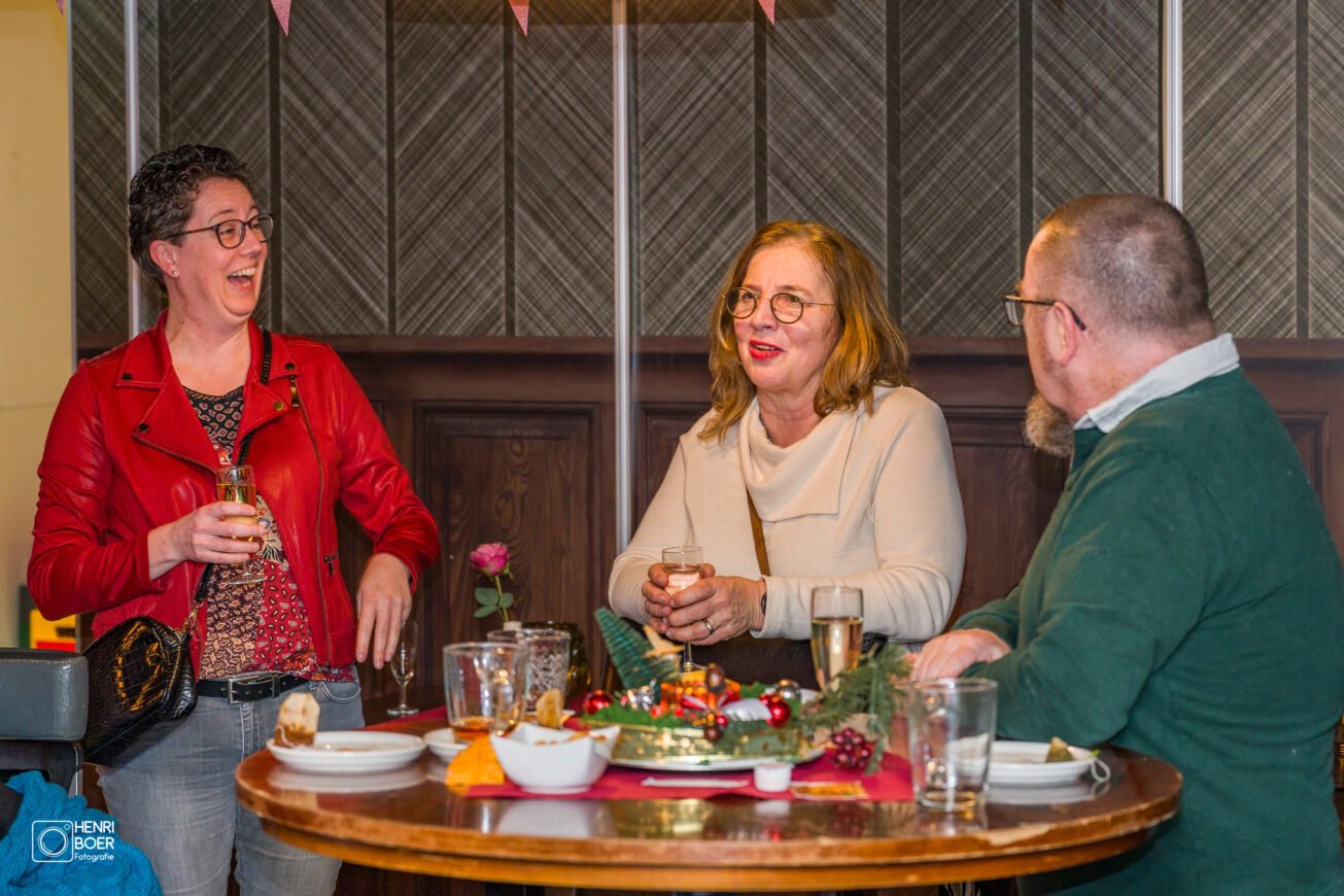 Vanaf 19:30u komen de gasten binnenlopen (een aantal toch weer via de ‘verkeerde’ ingang). Ze worden verwelkomd met een kopje thee of koffie. Helaas zijn er door ziekte en andere dringende omstandigheden relatief veel afmeldingen. Hierdoor is de borrel iets minder XL dan van te voren gehoopt. Het wel aanwezige gezelschap bestaat uit leden, oud-leden en introducés. Bij afwezigheid van Corine neemt Robin Alexander het openingswoord voor zijn rekening. Hij verwelkomt iedereen van harte, wenst ons het allerbeste voor het nieuwe jaar en geeft aan de introducés de gelegenheid zich kort voor te stellen.